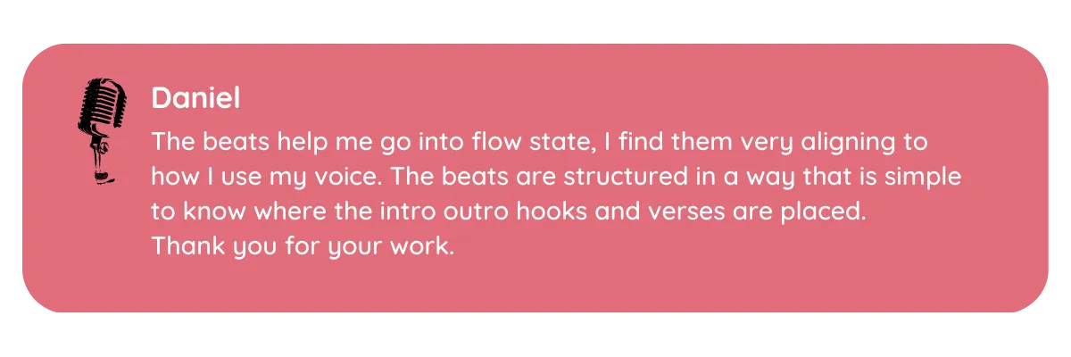 Your beats are very catchy musically! This helps connect ideas that I have to the sound of the beat. Also, I am able to select a beat to write to because each beat is unique in its sound.
